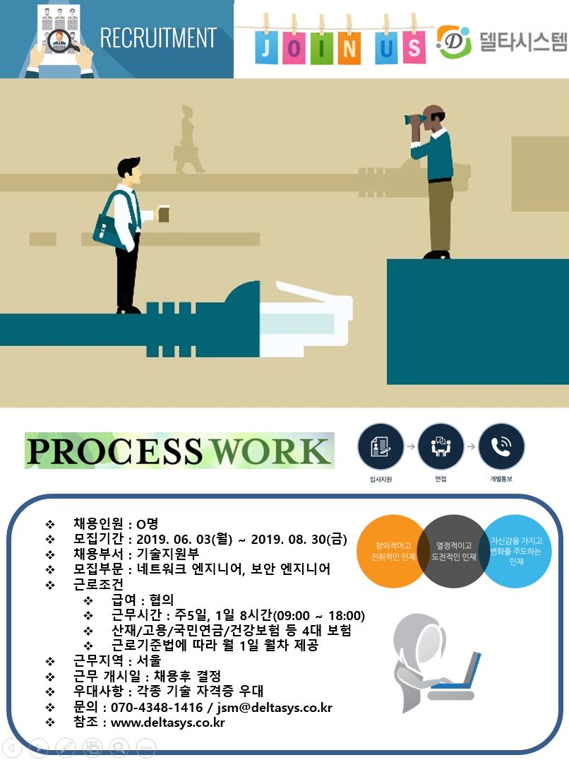 2019년 (주)델타시스템에서 함께 같이할 가족을 모십니다.